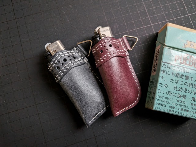 ## メダリオンライターケース スタイリッシュ、実用的なライターケースです。小物、レザーのライターケースでよく見られがちなデザインかと思いきや、特徴的でメダリオン、ダブルステッチを施したフォルムは、どんなシーンでも映えるアイテムです! 手にしっくりと馴染む設計、持ち運びにも三角カンを使えば多用途になり、便利です。ご家族、友人へのプレゼントや、自分へのご褒美としても最適です。 おおよそのサイズ 厚み:20mm 幅:40mm 高さ:80mm ※三角カン、耳含まず カラー:革の名称 - 黒:ロロマレザー - 紫茶:バッファロー 天然皮革を使用しているため扱いにはご注意ください。 動物本来のキズ、シワ、シボ等は製品の欠陥ではございません。 御了承の上購入ください。