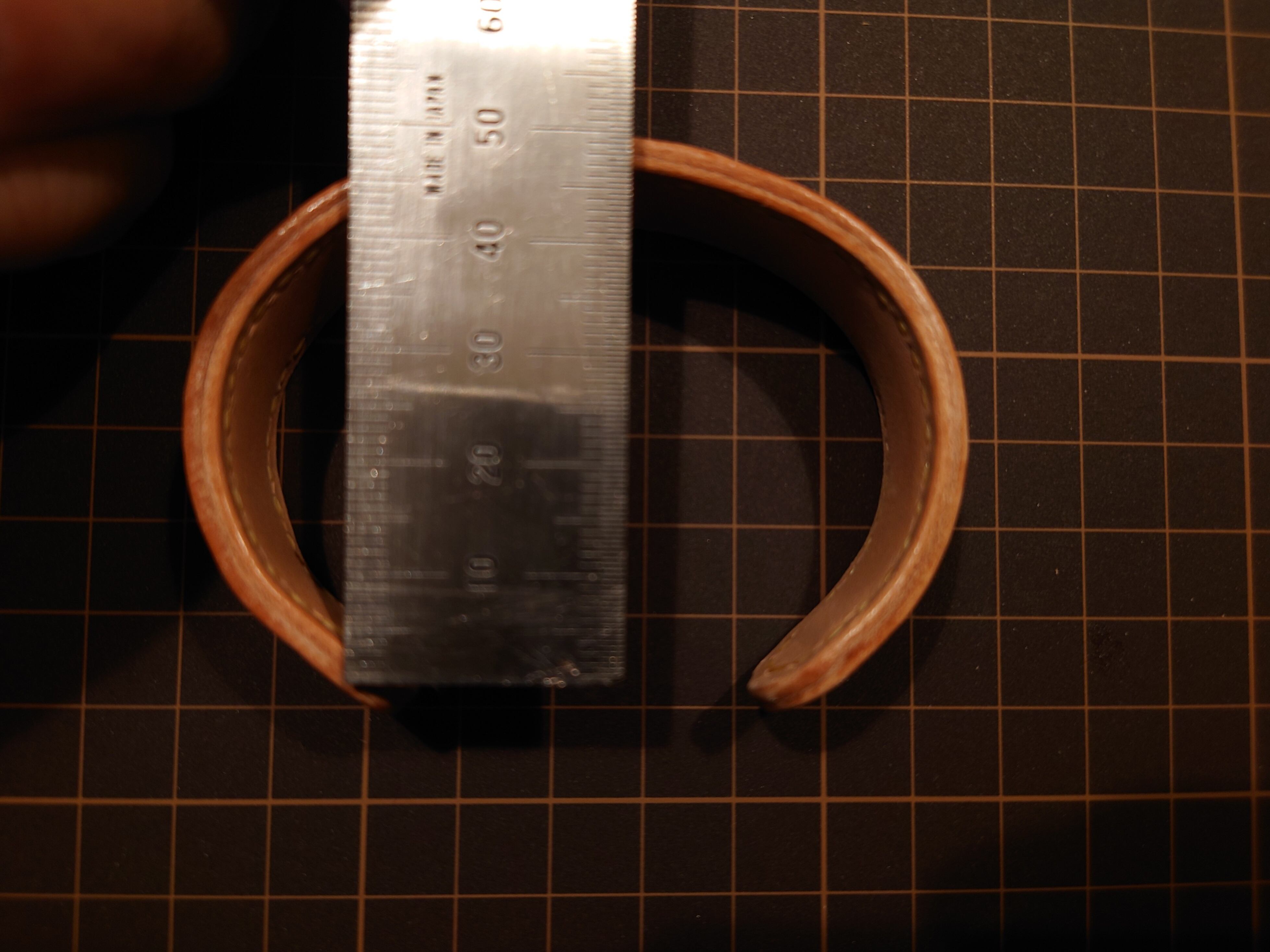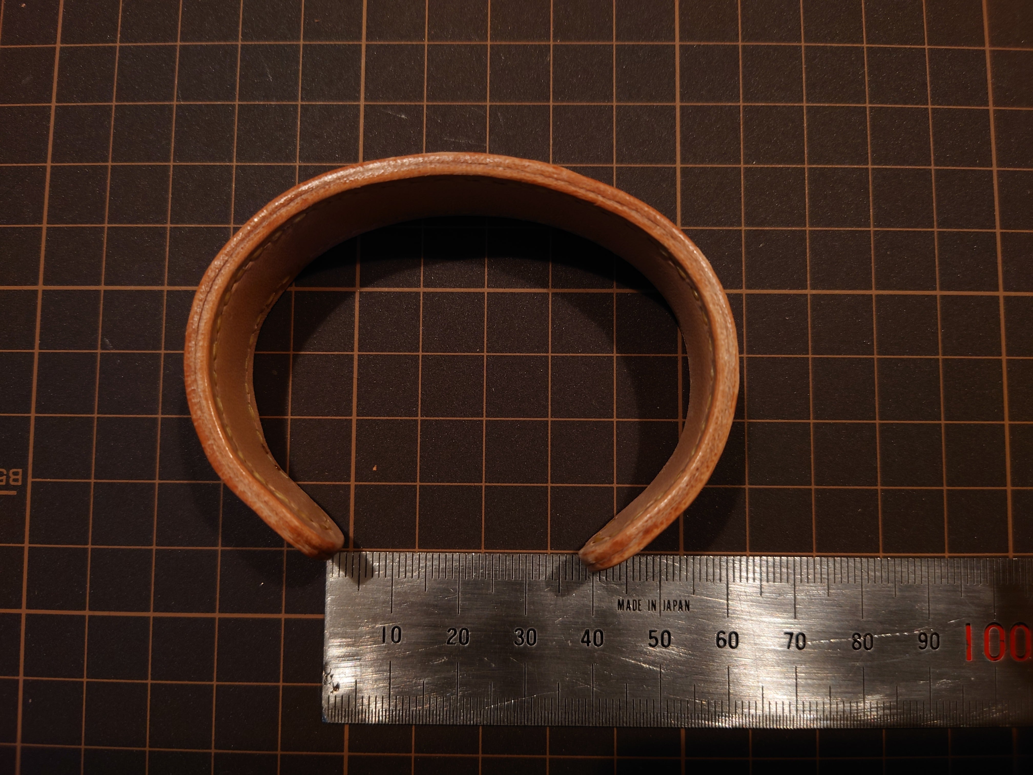 また、硬い革ではありますがバングルの芯材、