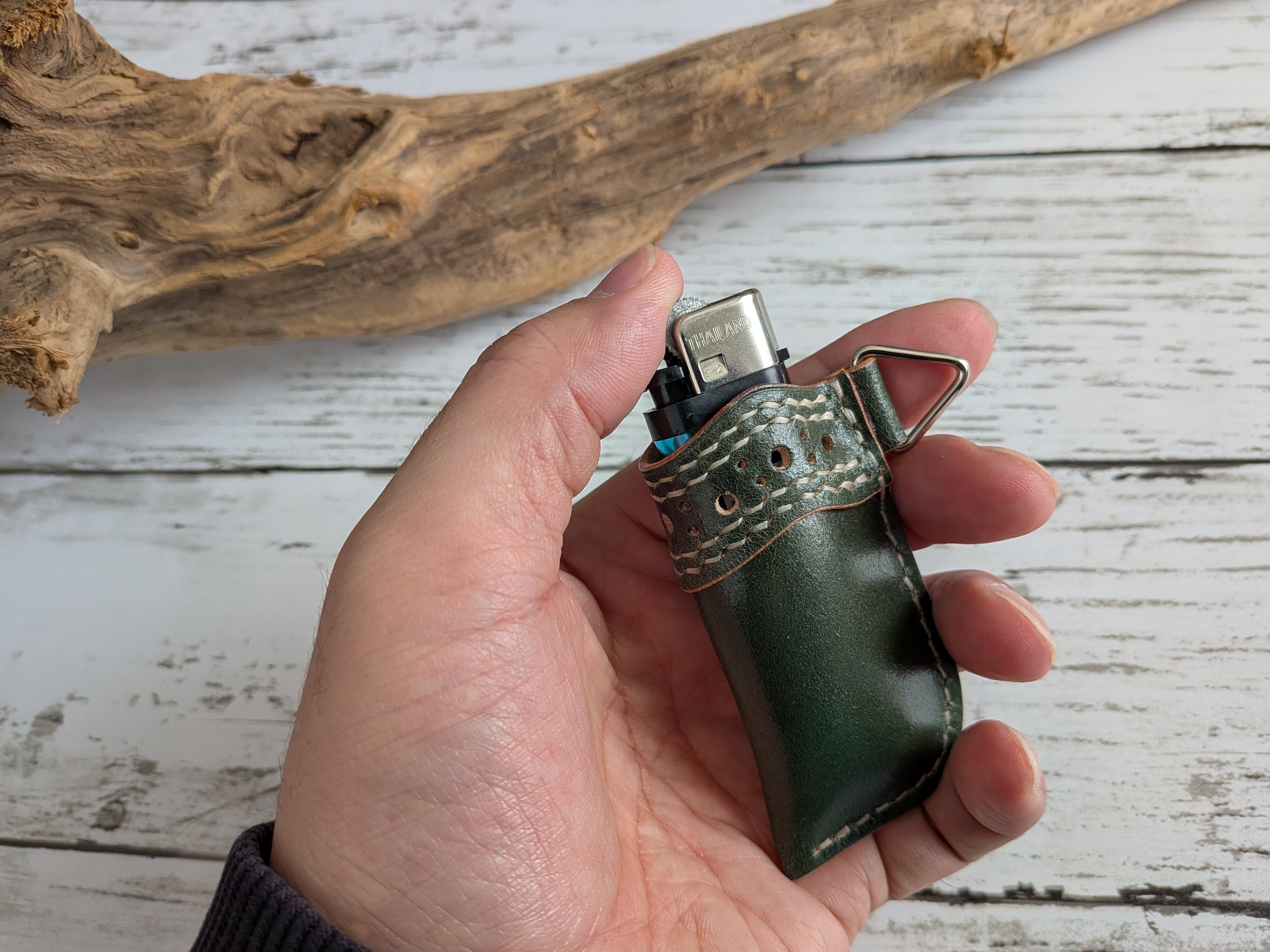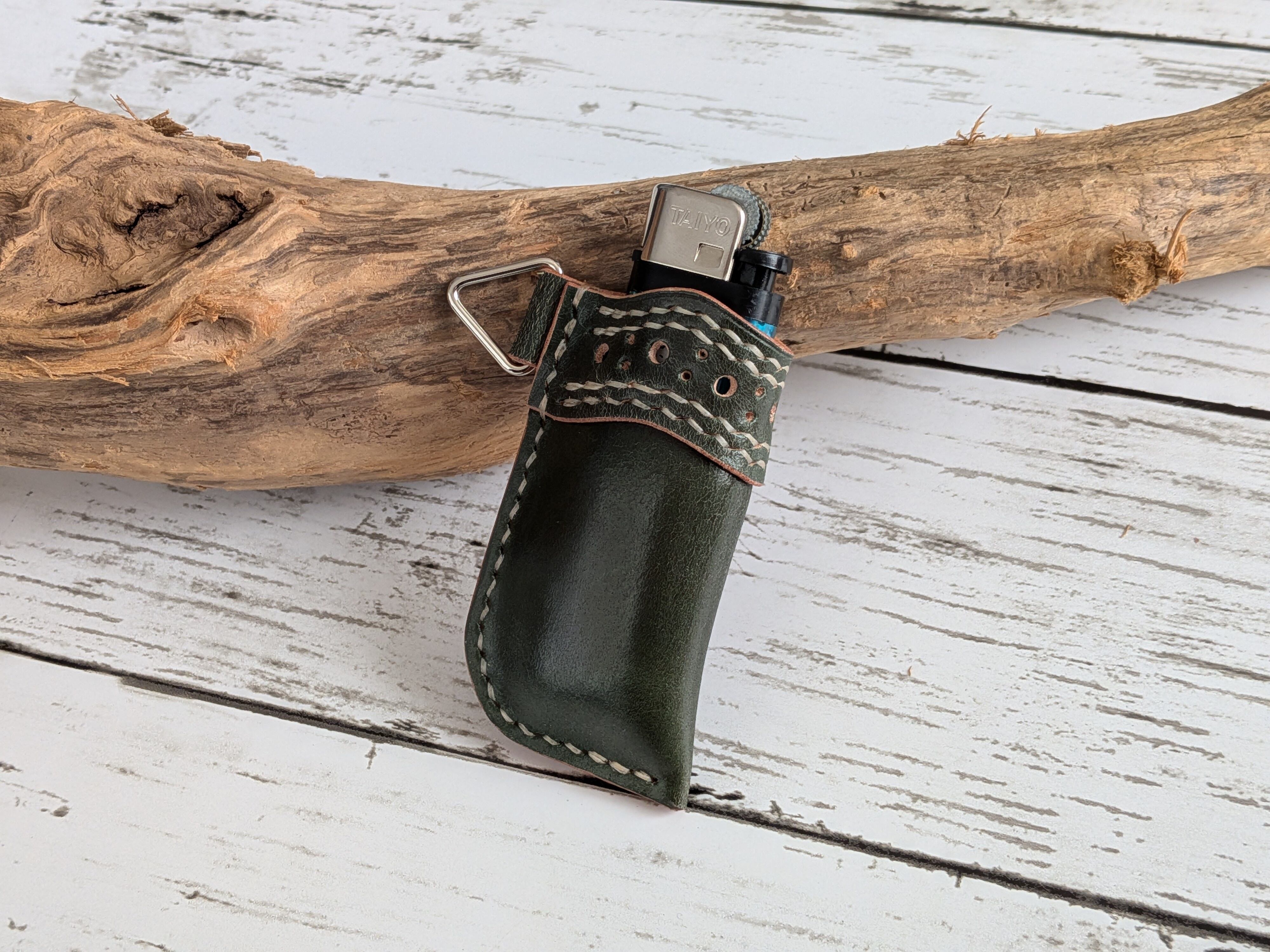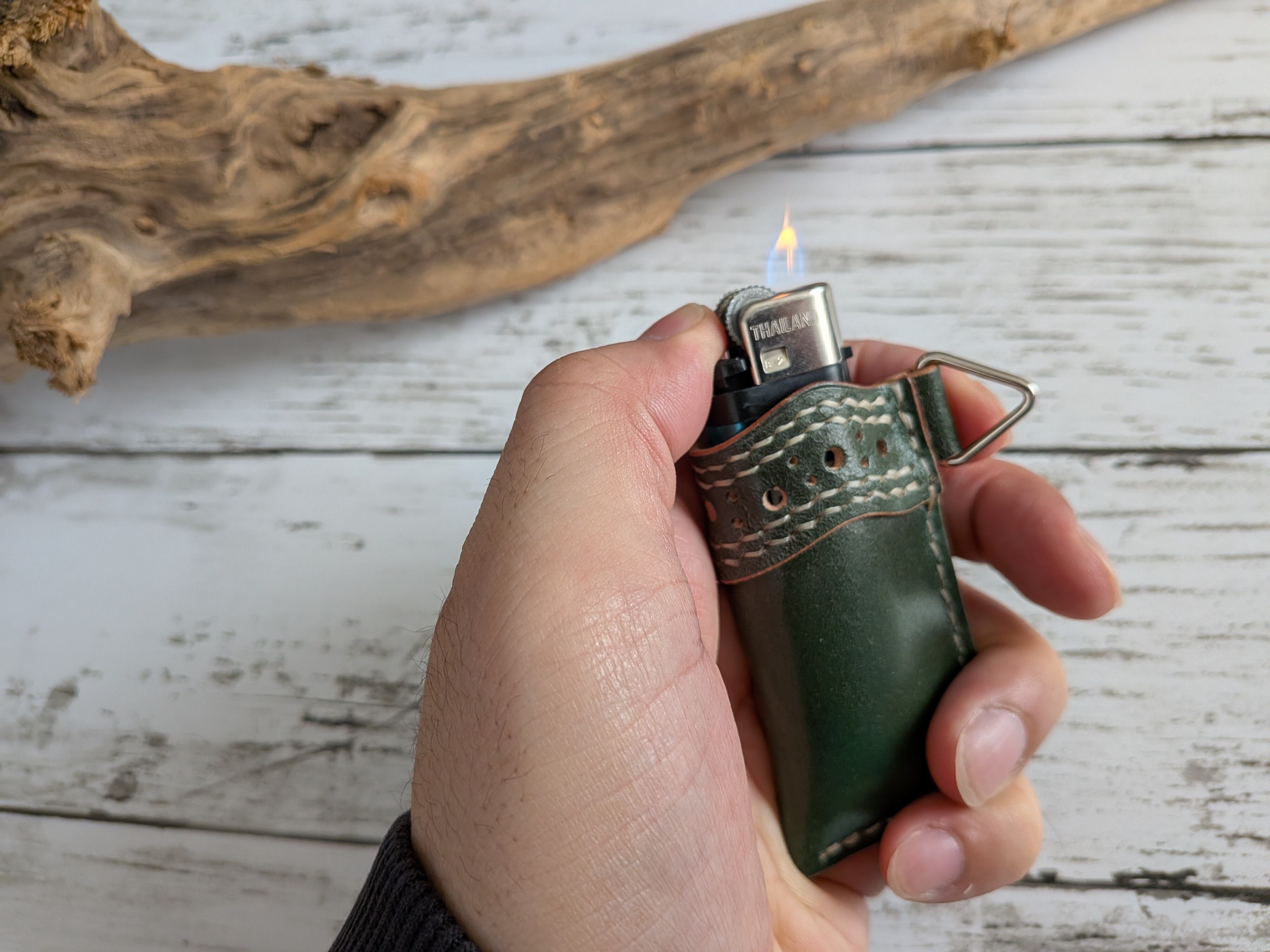 スタイリッシュ、実用的なライターケースです。小物、レザーのライターケースでよく見られる形ですが、デザインが特徴的でメダリオン、ダブルステッチを施したフォルムは、どんなシーンでも映えるアイテムです!