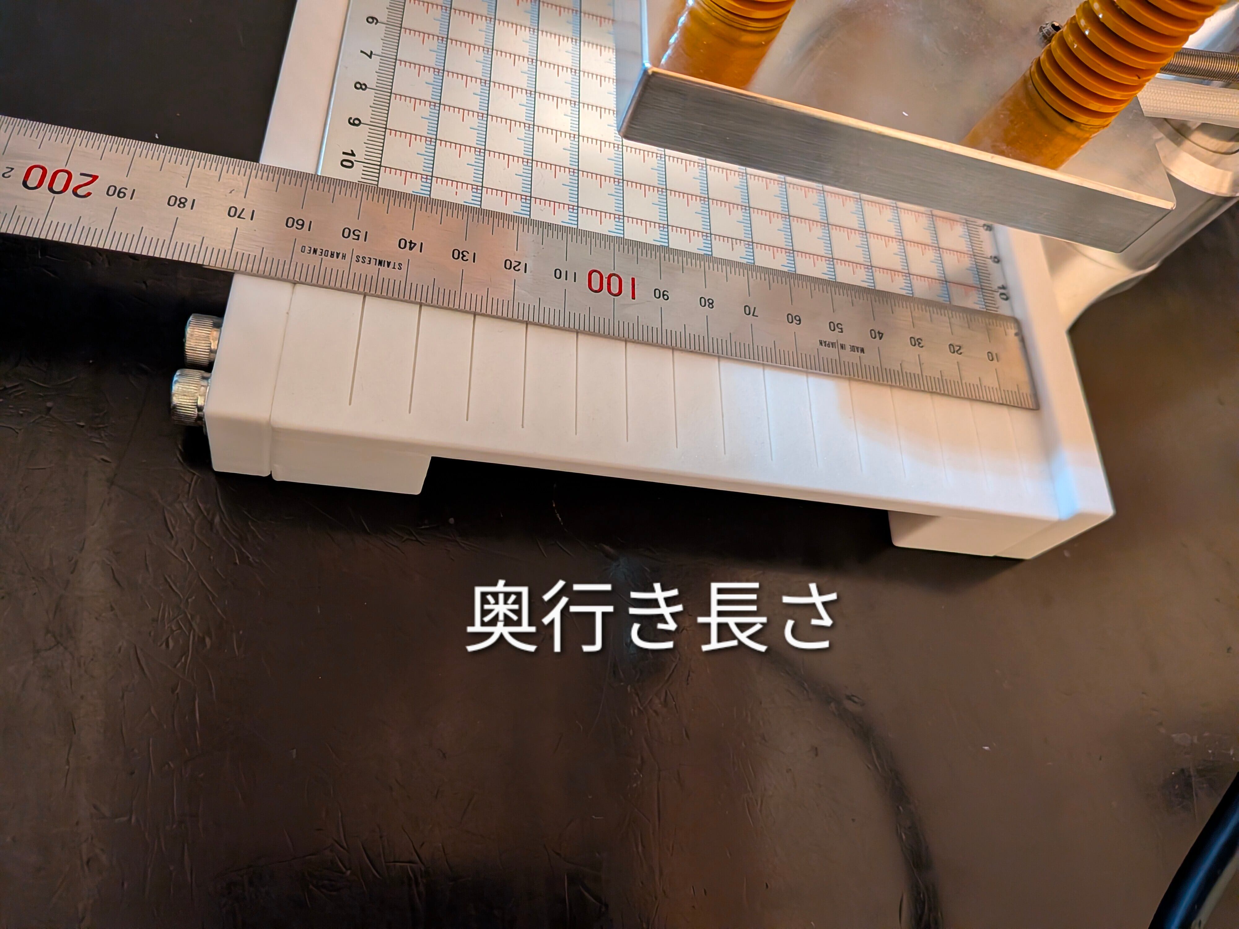 ベースの横幅は140mm(目盛は12センチ)タイプで、治具側は145mmで作ってますのでボルトで合わせられる様になっています。高さはアジャスターも含めてベースまで24mmで作っています。