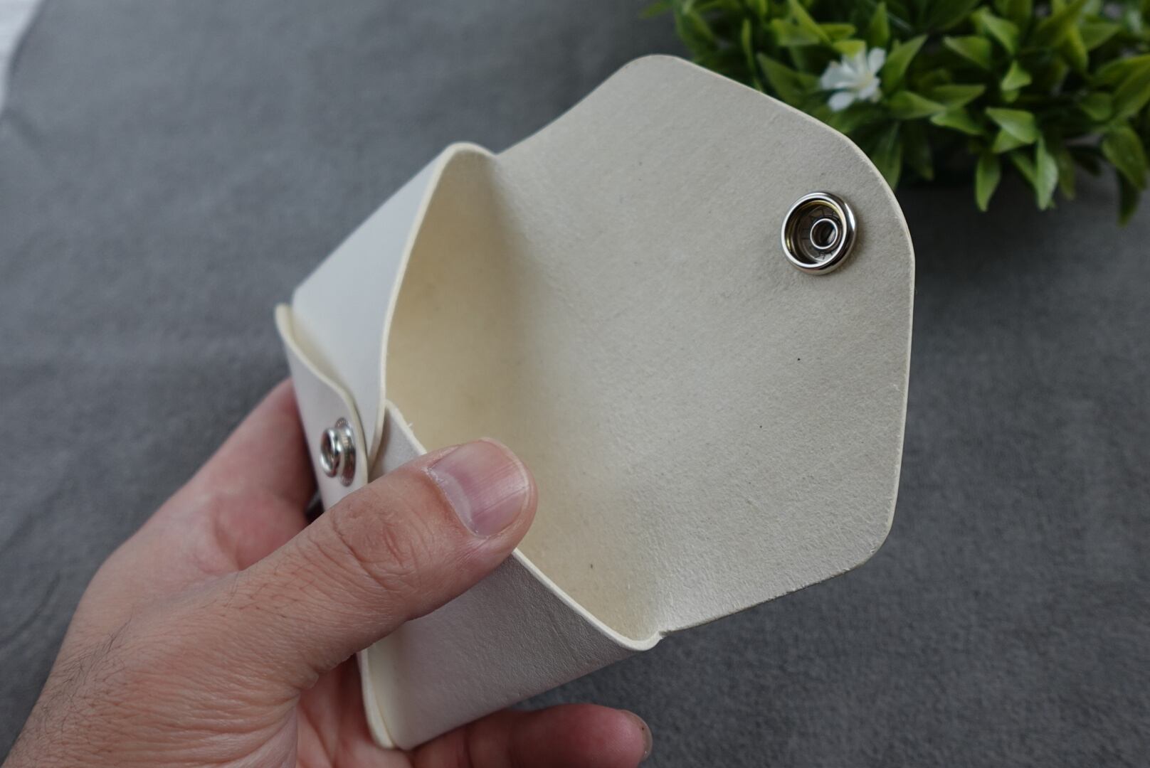 製作費が高くならないように、縫わずにず仕立ててあります。シンプルですが、牛革をお客様の手にとって頂きたいと考えて設計しました。