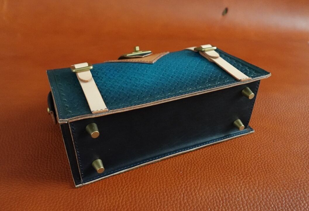 深海Blueミニダレスバッグ エアブラシ染め、スタンピング仕様