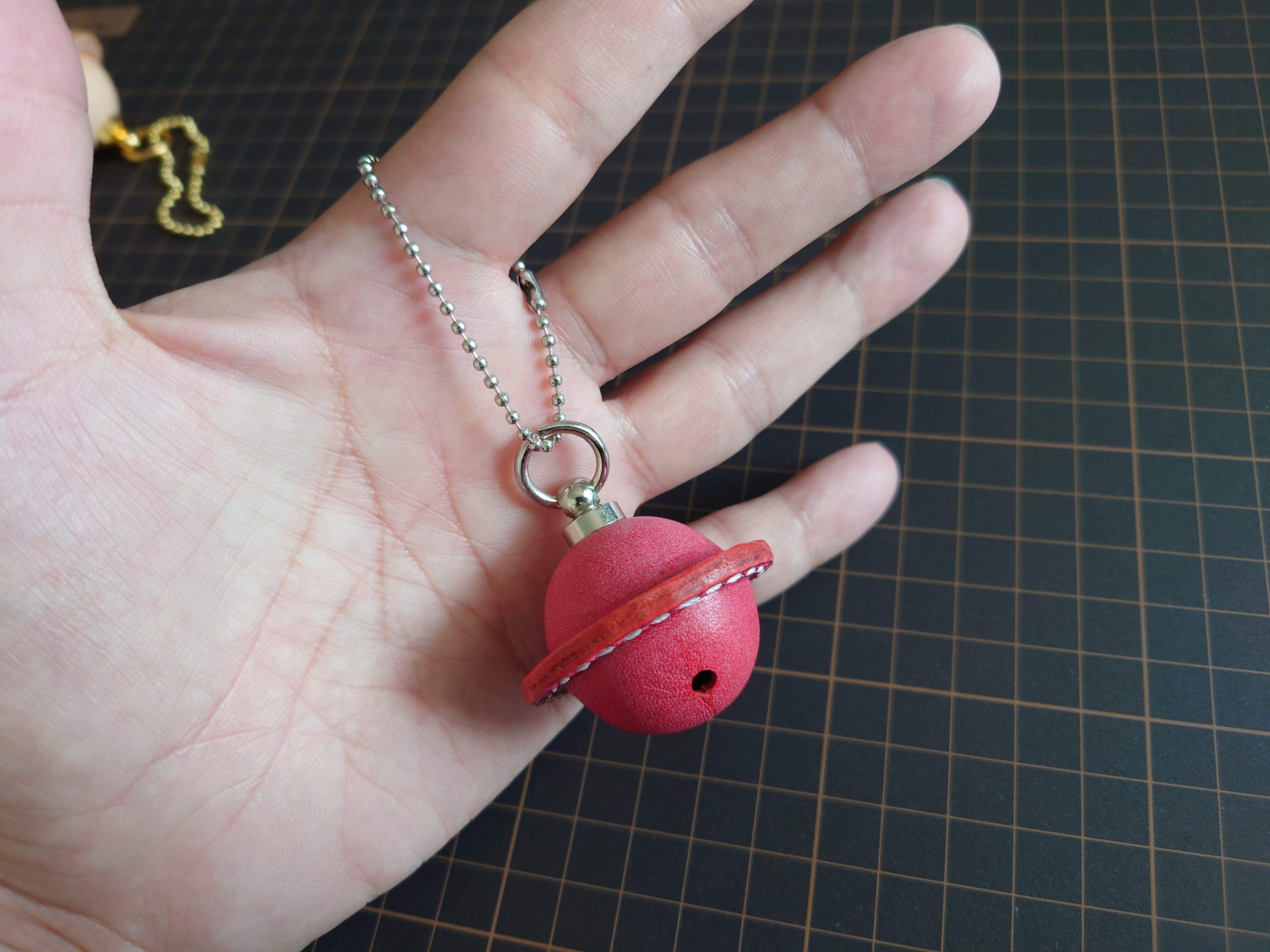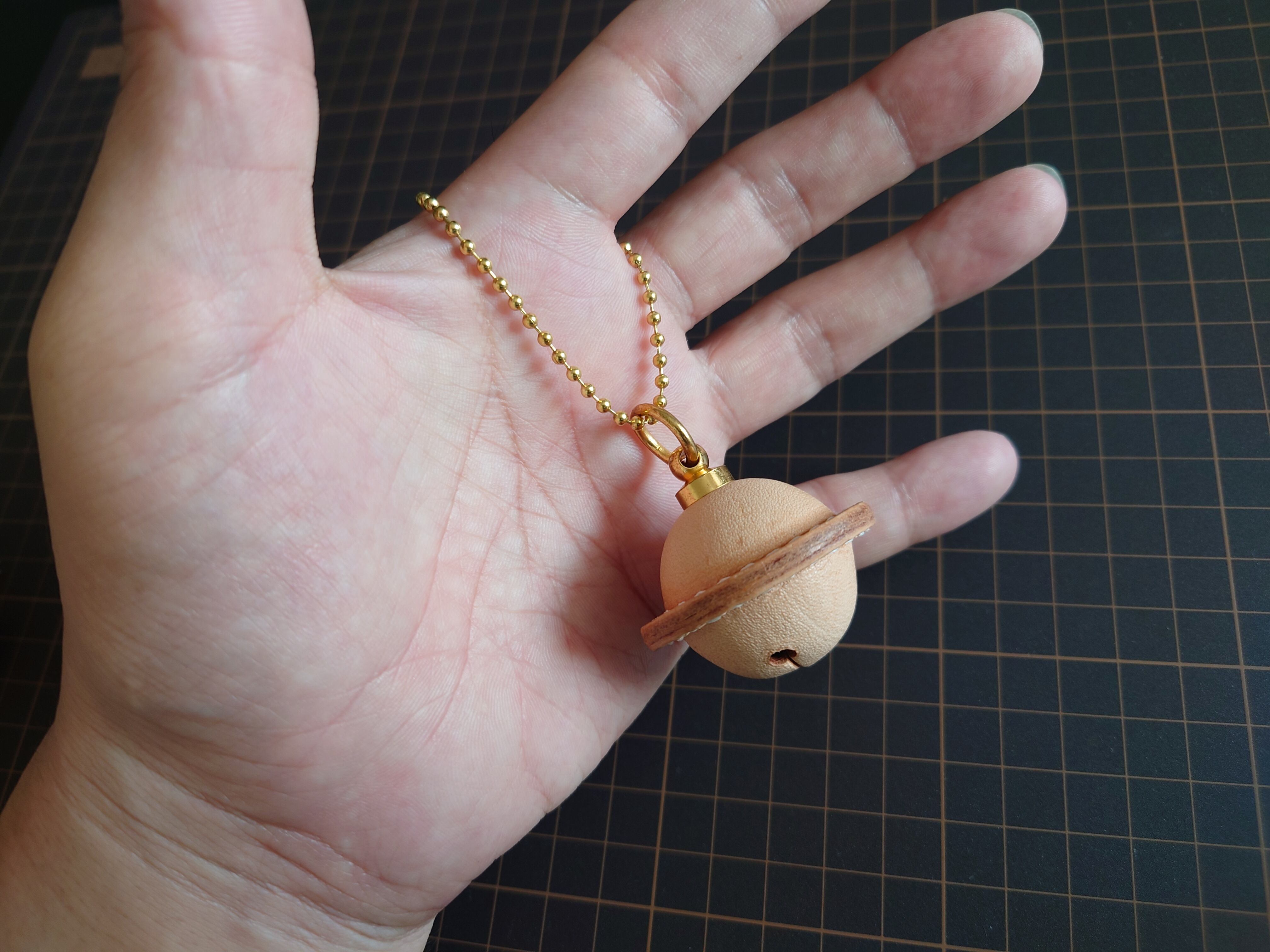 革で作ったベルのキーホルダー。